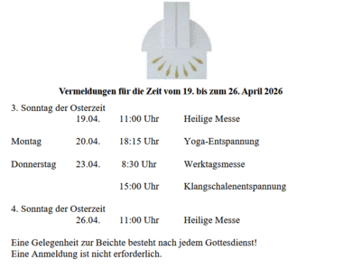Start > Hauptnavigation > Neues von uns > News > Vermeldungen für die Zeit vom 19. bis zum 26. April 2026