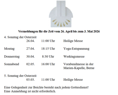 Start > Hauptnavigation > Neues von uns > News > Vermeldungen für die Zeit vom 26. April bis zum 3. Mai 2026